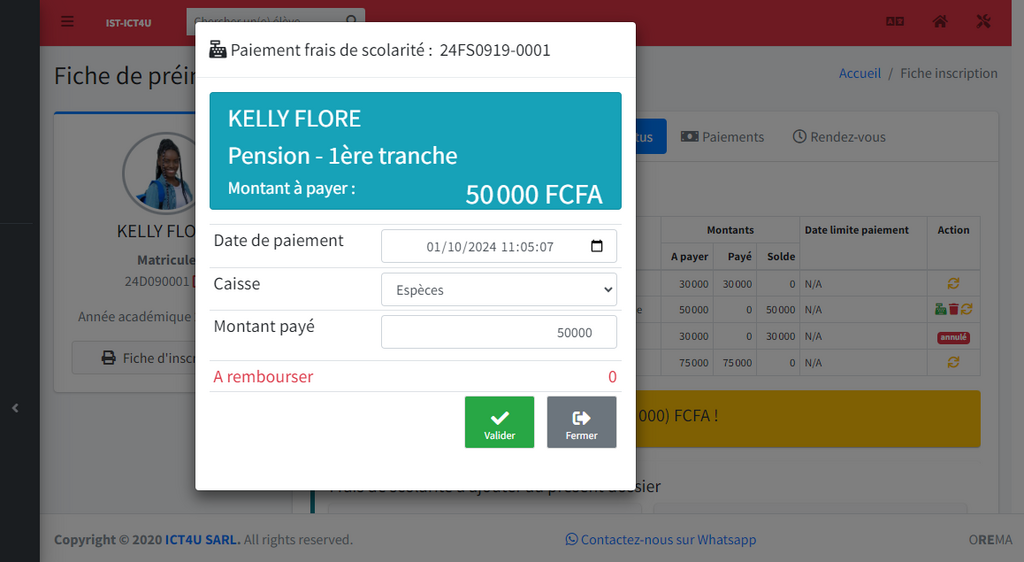 Créez les différents frais de scolarité à votre convenance. Ils sont ensuite automatiquement affecté à chaque dossier d'inscription pour un suivi rapide, simple et efficace.